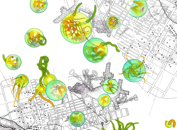 Using human and architectural characters of Saskatoon as a narrative code, Lu proposes a process of city planning that involves a continual personal re-configuration of local stories. Bueckert renders collected images into hybrid maps that explore the evolutions and revisions of city building. Employing a non-linear book format, the artists splice their imagined urban spaces to form permutations of possible mapping schemes.